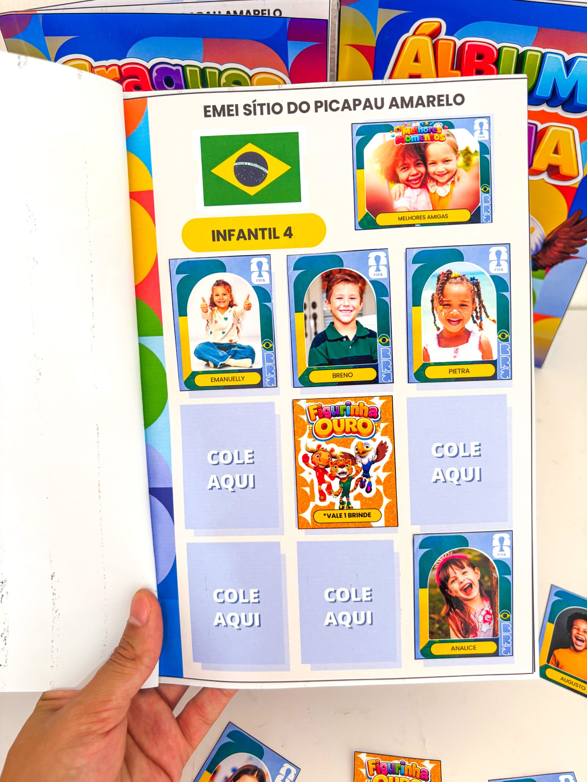 🤗 E tem mais: você pode incluir até 42 figurinhas, misturando fotos das crianças e também momentos especiais da turma, deixando o álbum ainda mais significativo e cheio de memória afetiva.