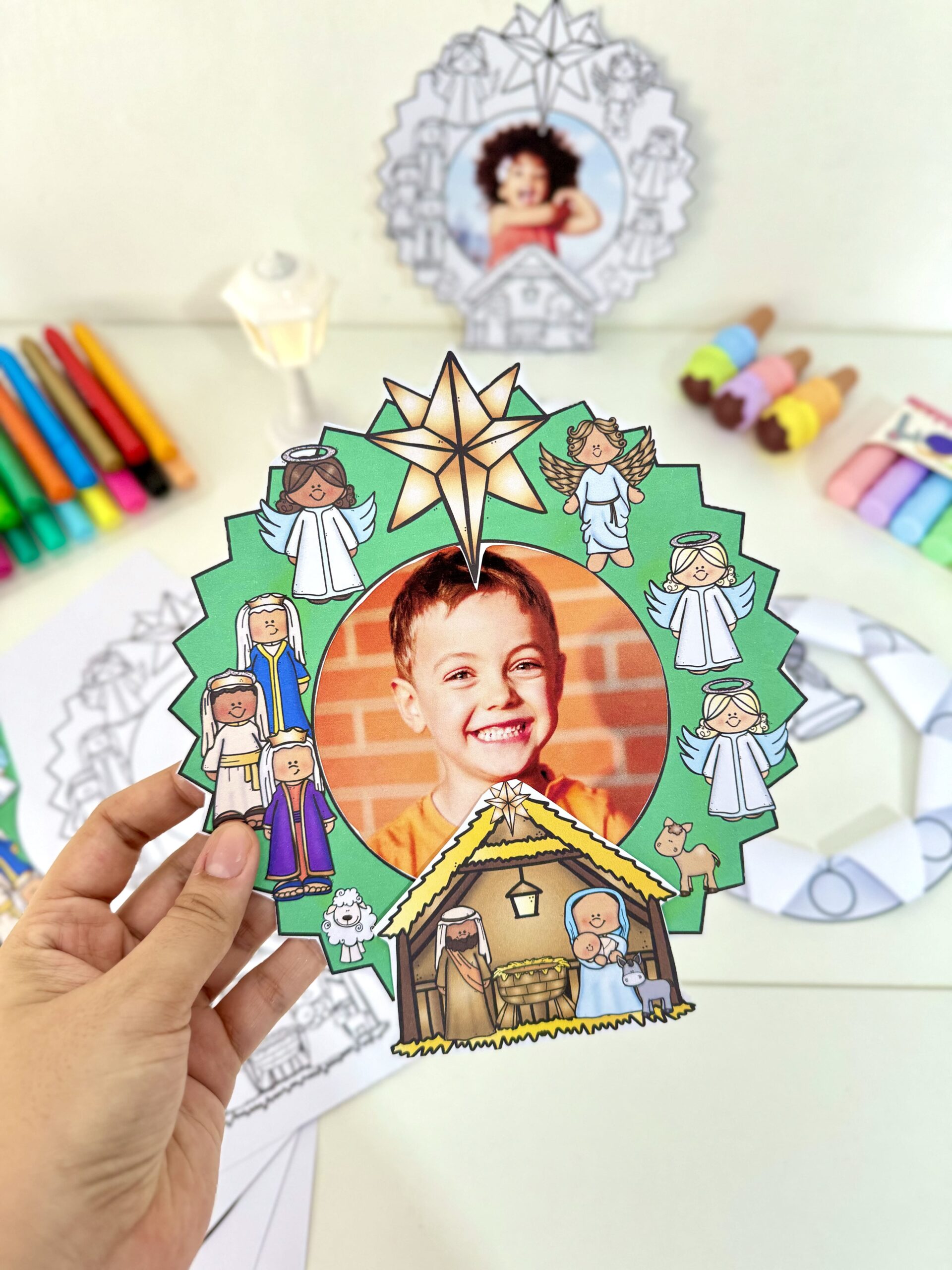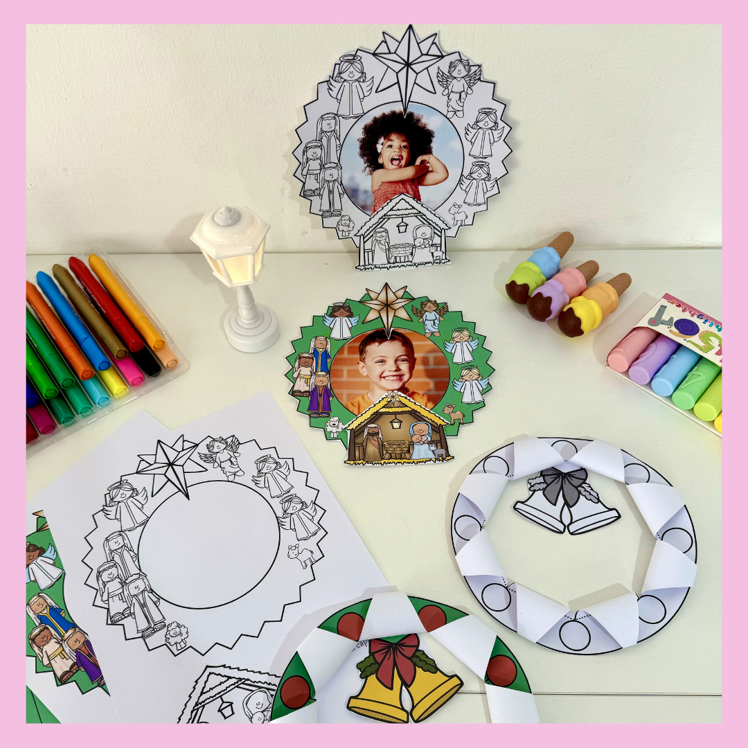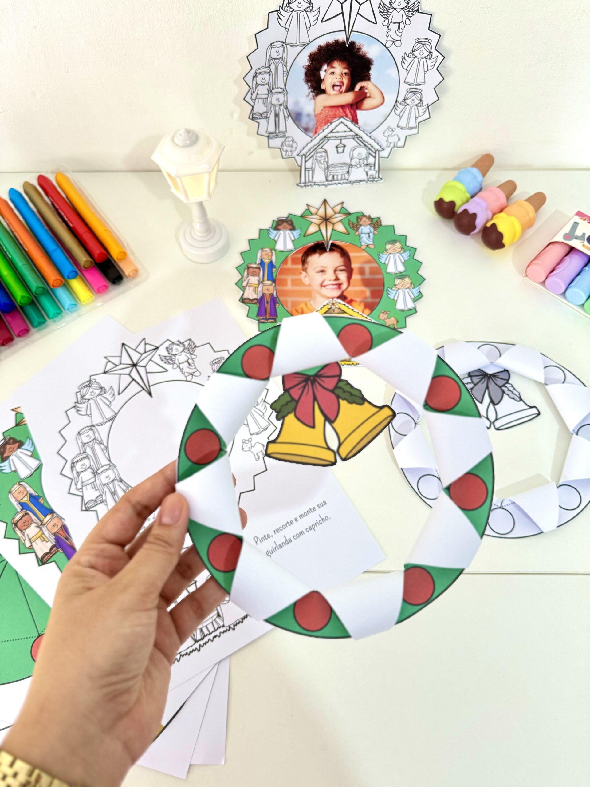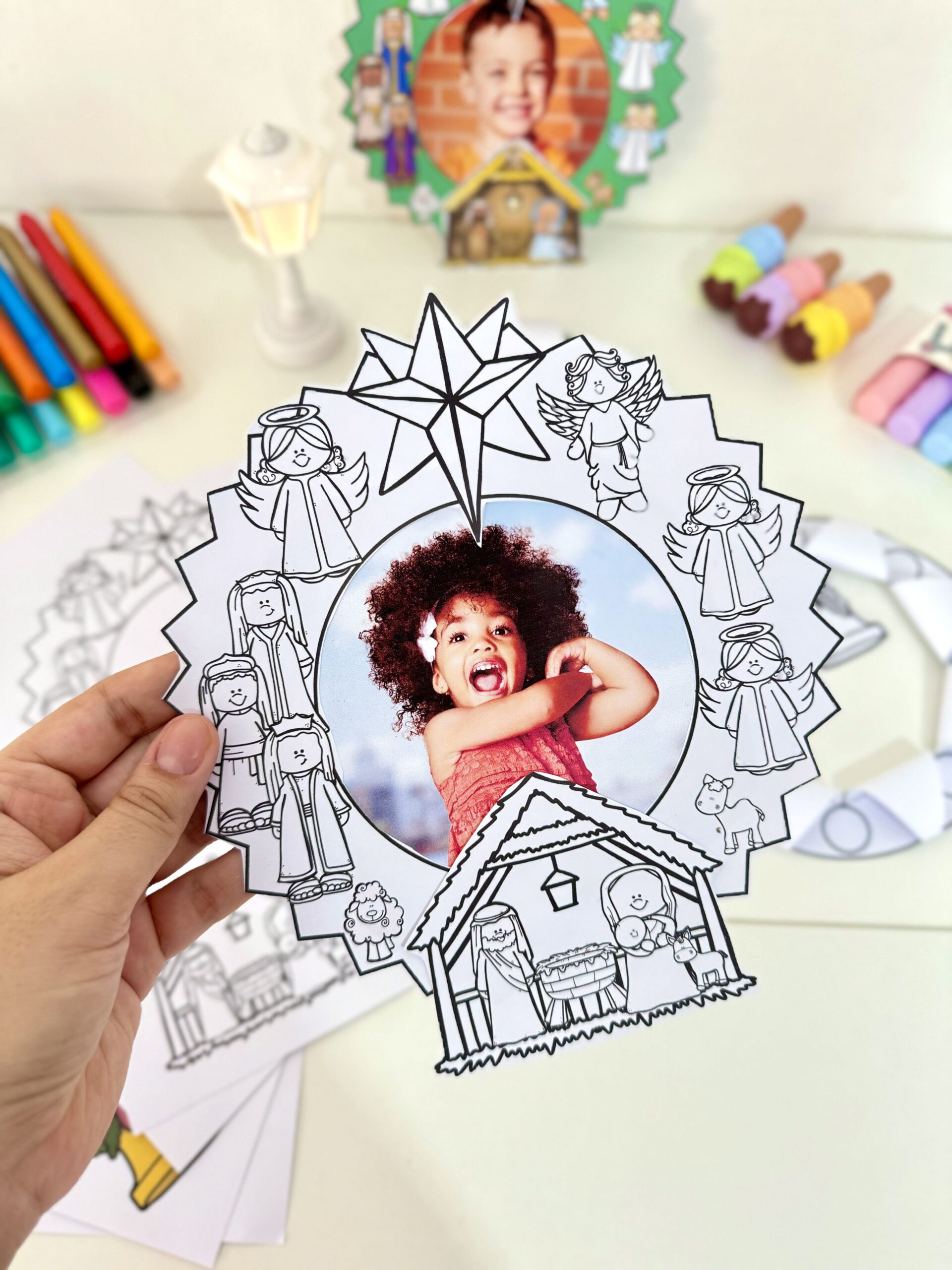 * Guirlanda para recortar e colar o presépio, opção decolar a foto da criança.