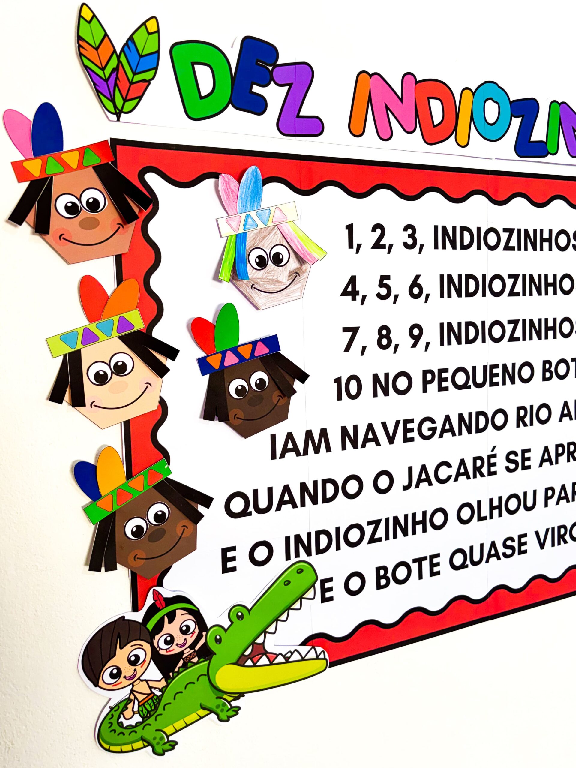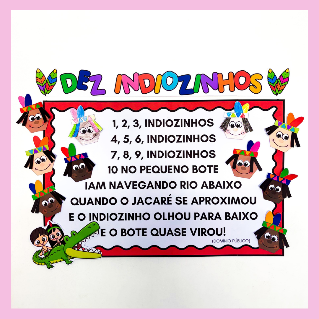 🤩 O cartaz da cantiga “10 Indiozinhos” foi pensado para sair do papel e virar vivência, especialmente no trabalho com o Dia dos Povos Indígenas na Educação Infantil.