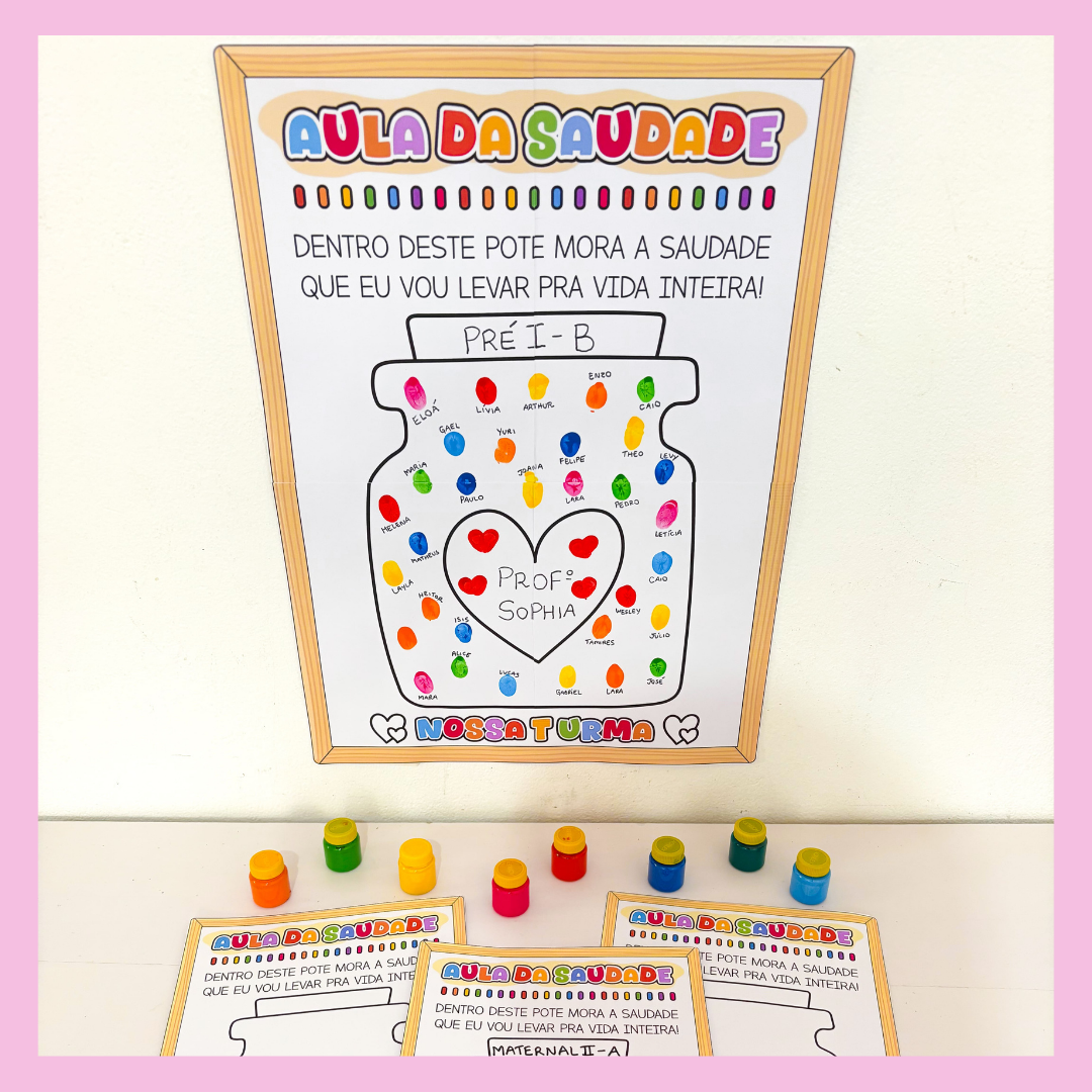 🥰 Um recurso cheio de significado para fechar o ano com o coração quentinho. Pensado especialmente para a Educação Infantil, este arquivo transforma o último dia de aula em um momento de afeto e memória: cada criança coloca sua digital dentro do potinho, criando um registro único das marcas que ficaram ao longo da nossa caminhada.