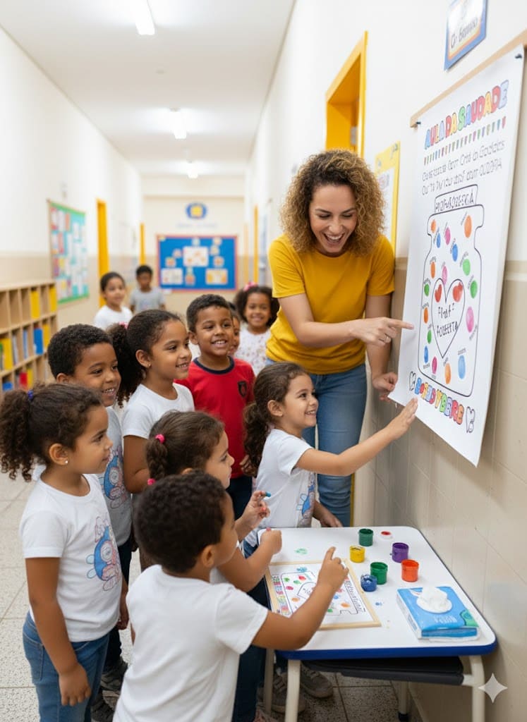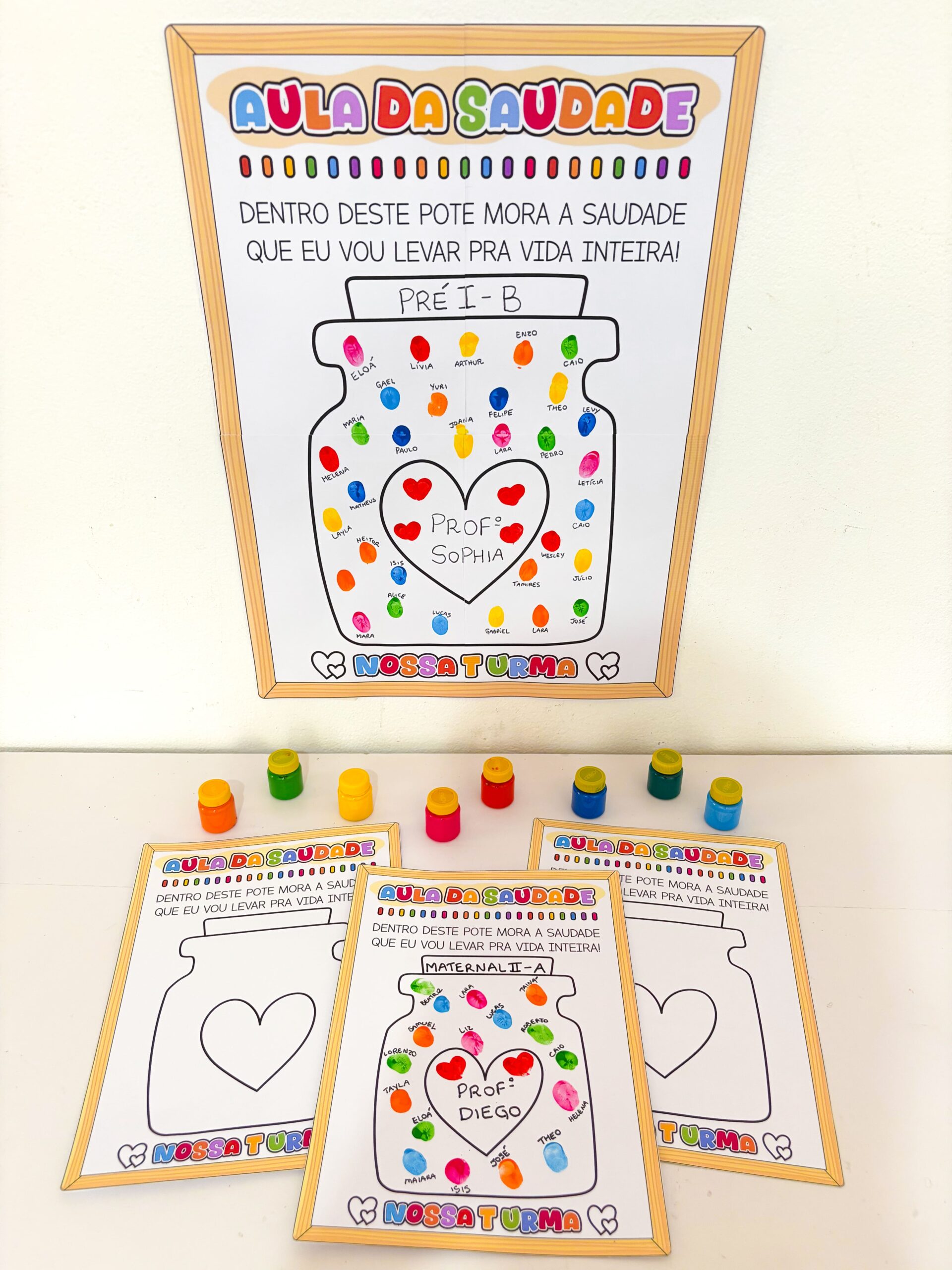 😍 A ideia é simples e poderosa. A digital de cada criança representa aquilo que a frase do cartaz traduz tão bem: “Dentro deste pote mora a saudade que eu vou levar pra vida inteira.”