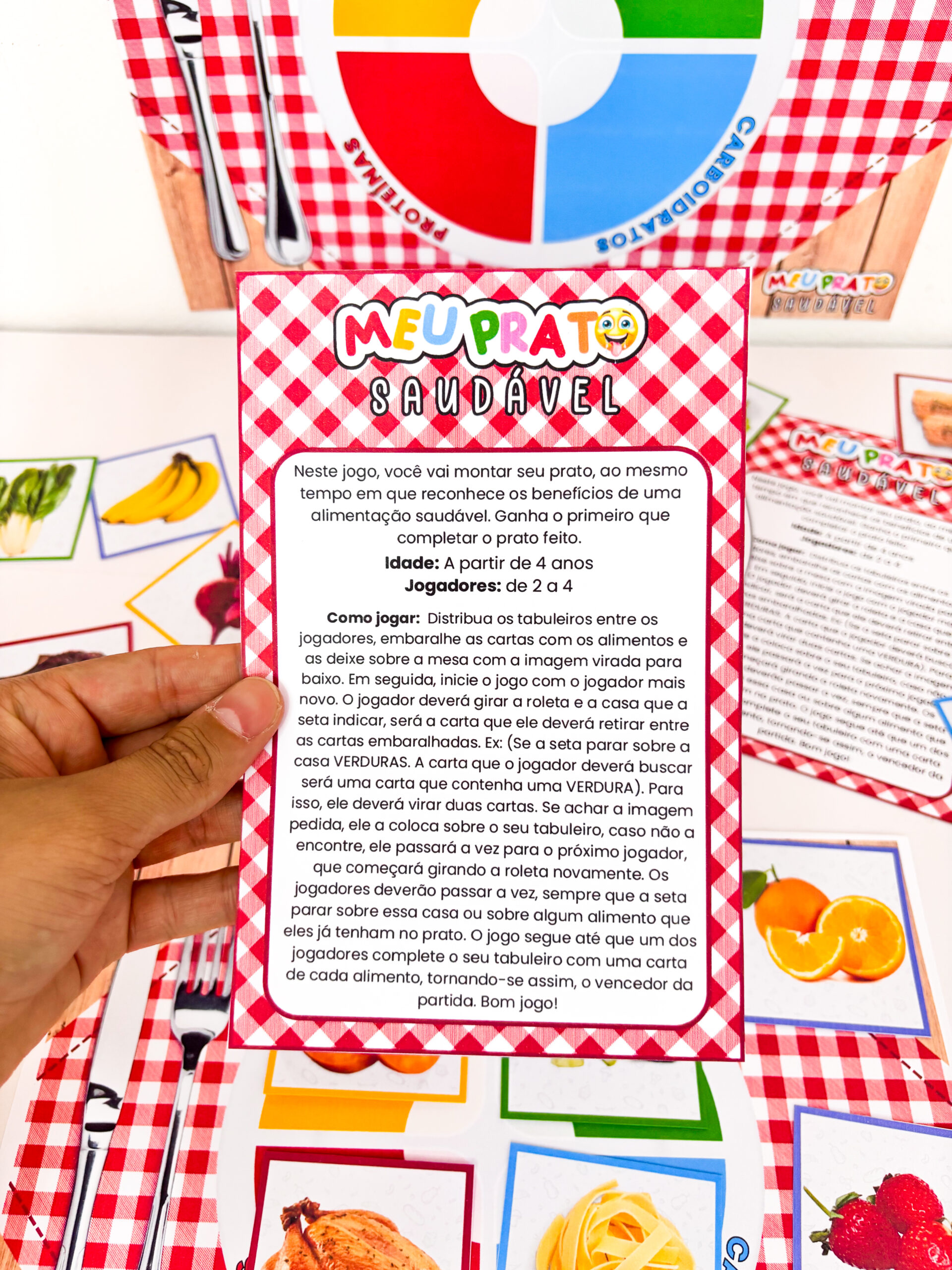 ⭕ Girar a roleta, virar as cartas, encontrar os alimentos certos e completar o tabuleiro se transforma em uma aventura cheia de descobertas.