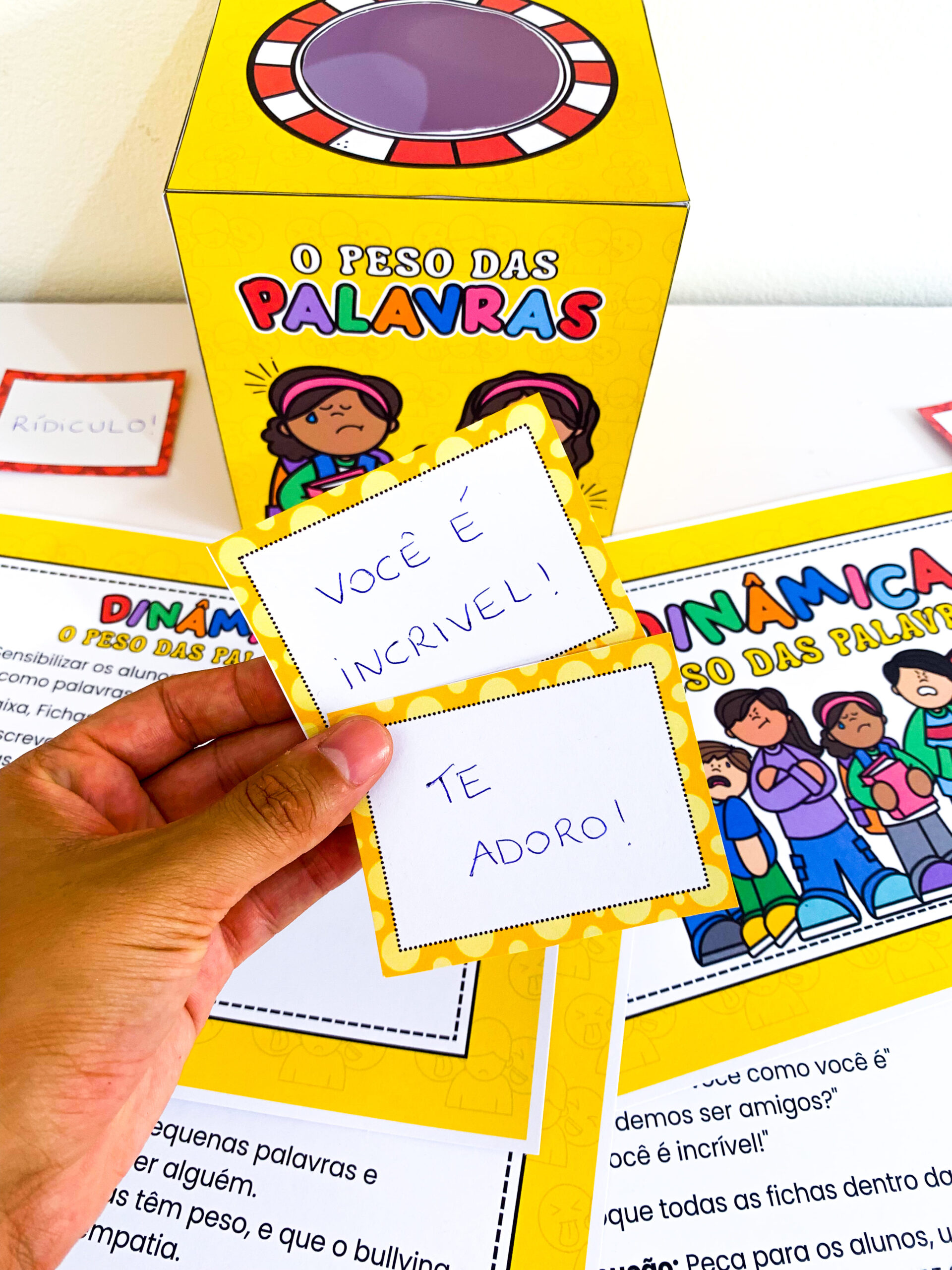 ✔️ Materiais completos para a dinâmica (fichas, caixa e guia de aplicação)
