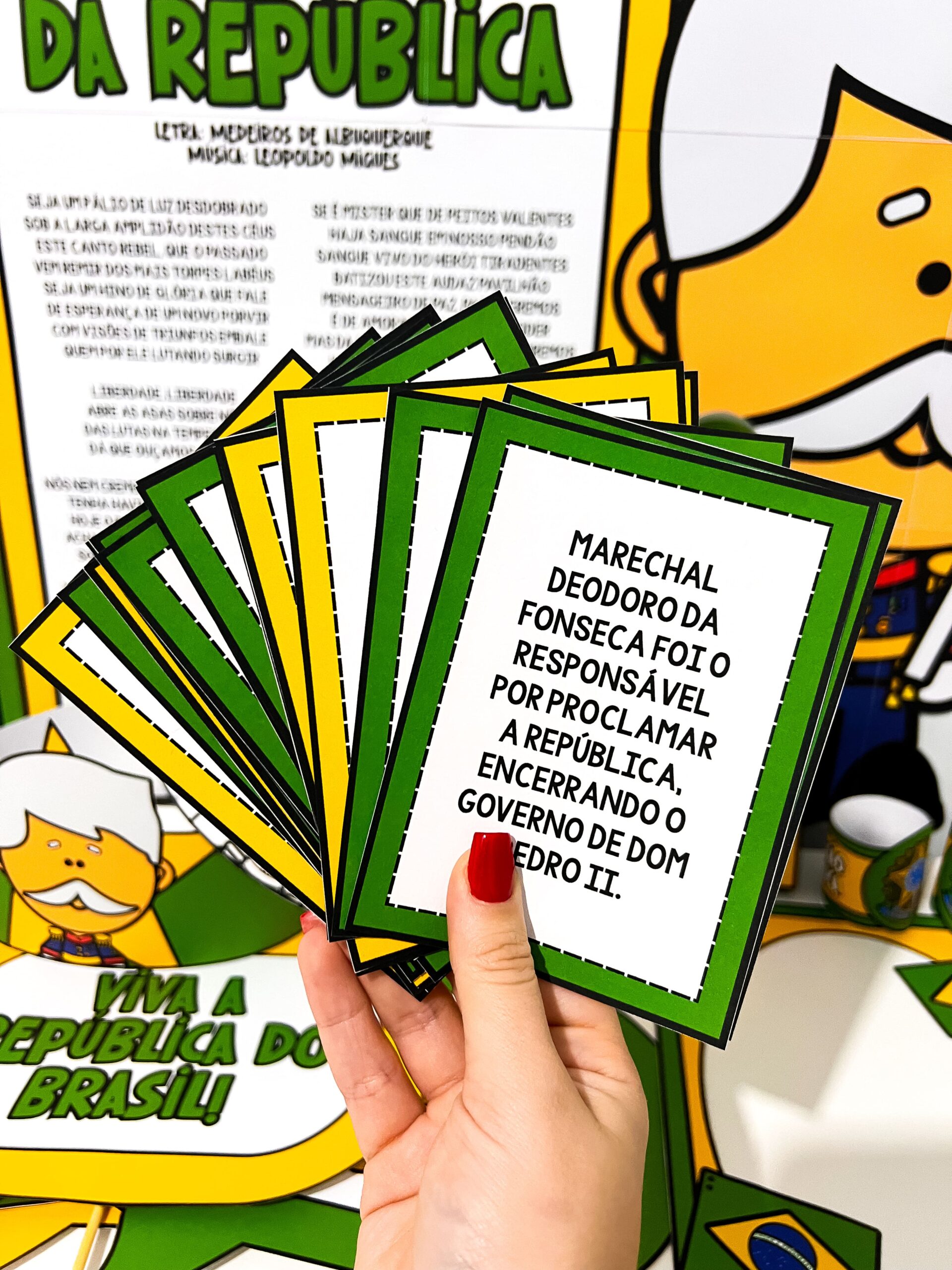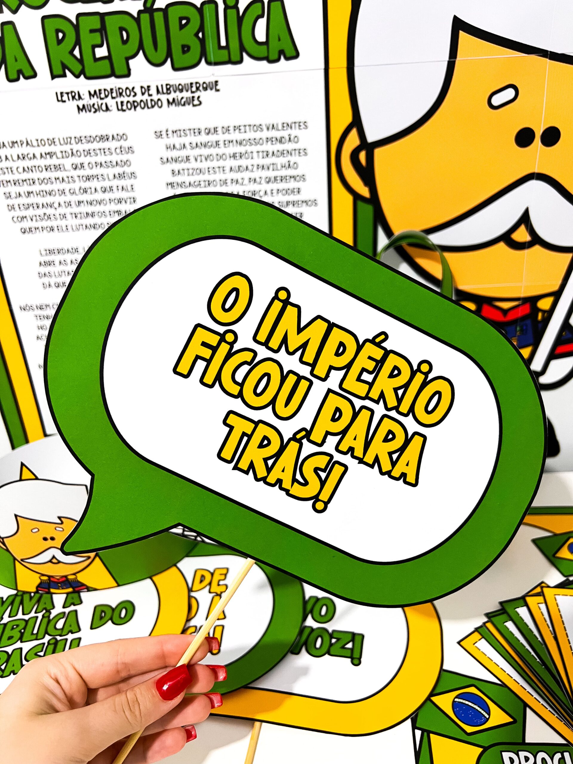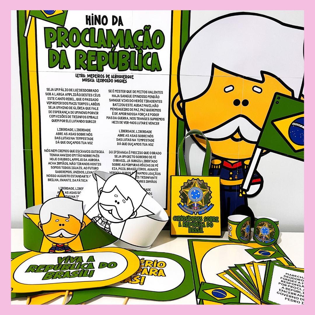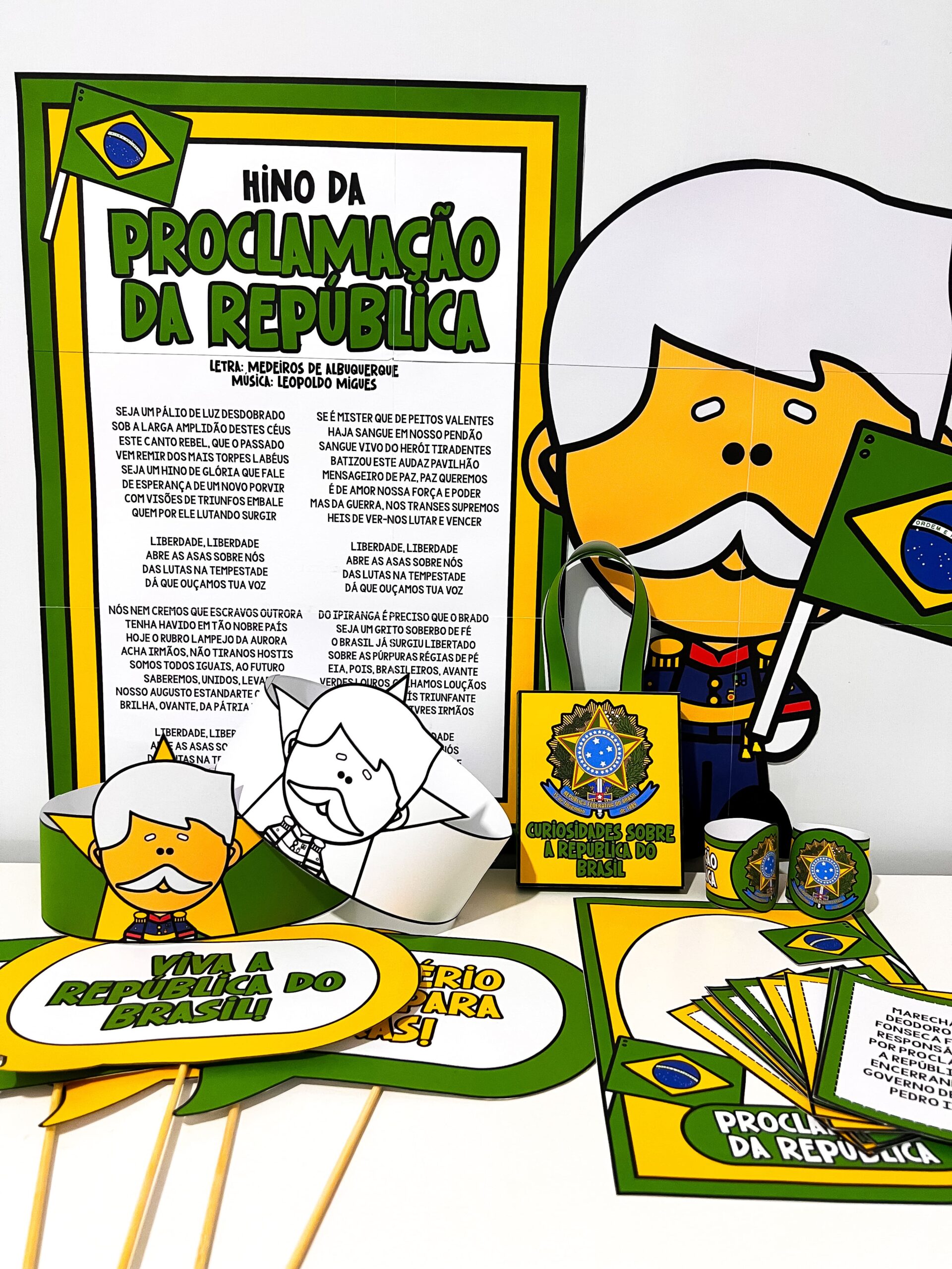 ✨ Com cores vibrantes e ilustrações atrativas, o kit une aprendizado histórico e diversão, sendo ideal para apresentações, murais, projetos e momentos comemorativos sobre a formação da República no Brasil.