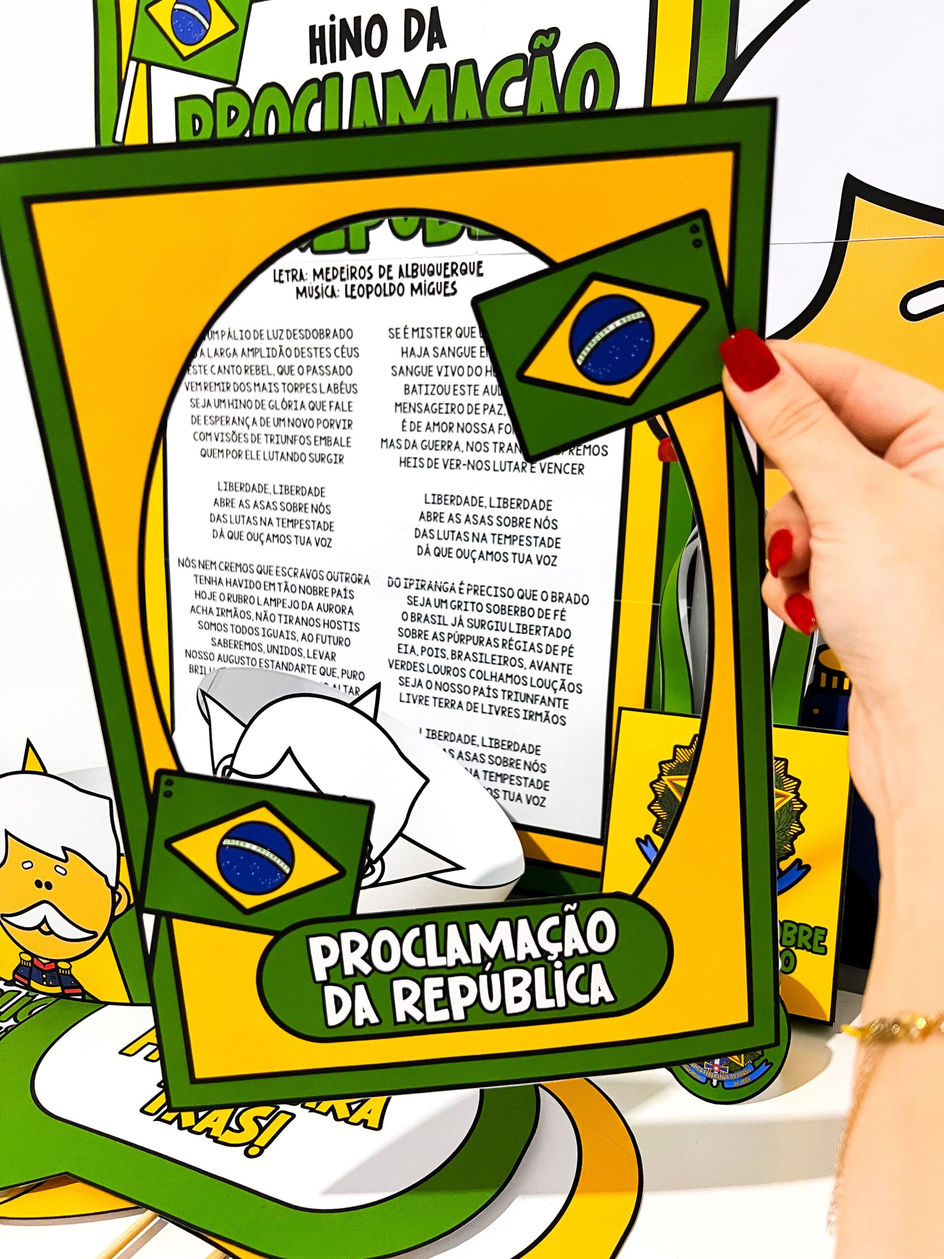✅ O material inclui um painel do Hino da Proclamação da República composto por 9 folhas, perfeito para murais escolares.