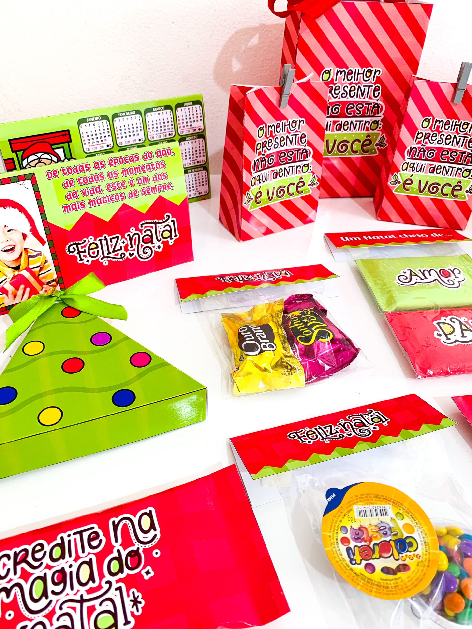🤩 Kit Lembrancinhas tema Natal com propostas que funcionam bem para presentear as crianças e a equipe escolar em geral.