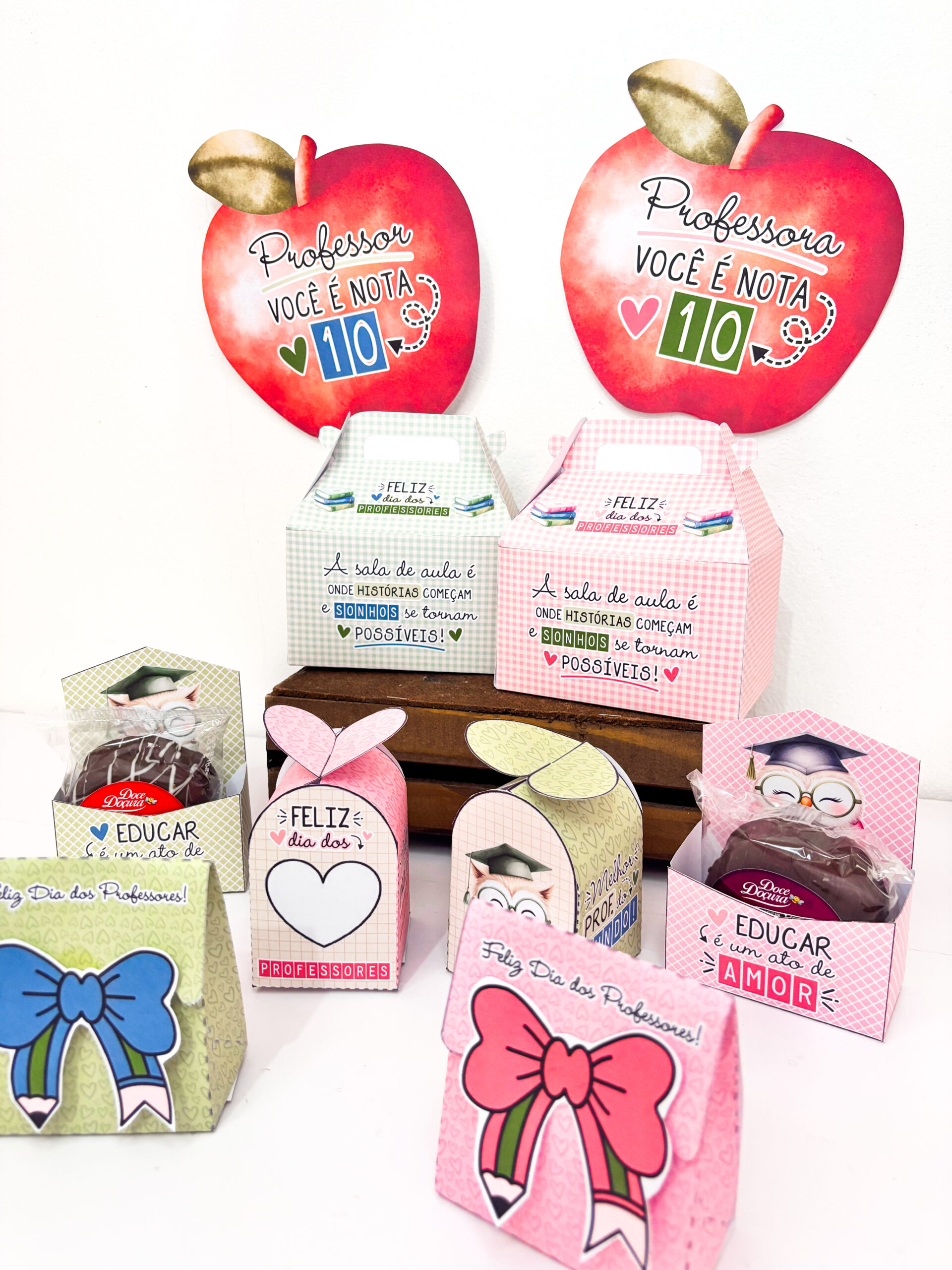 🎁 O Kit de Lembrancinhas chegou com várias opções de caixinhas criativas, perfeitas para presentear professor ou professora de um jeito especial.