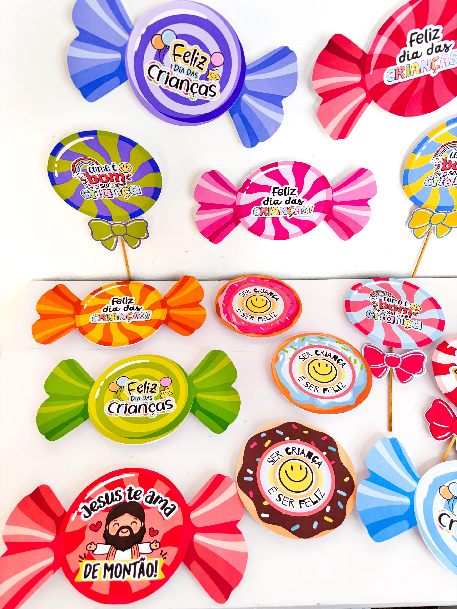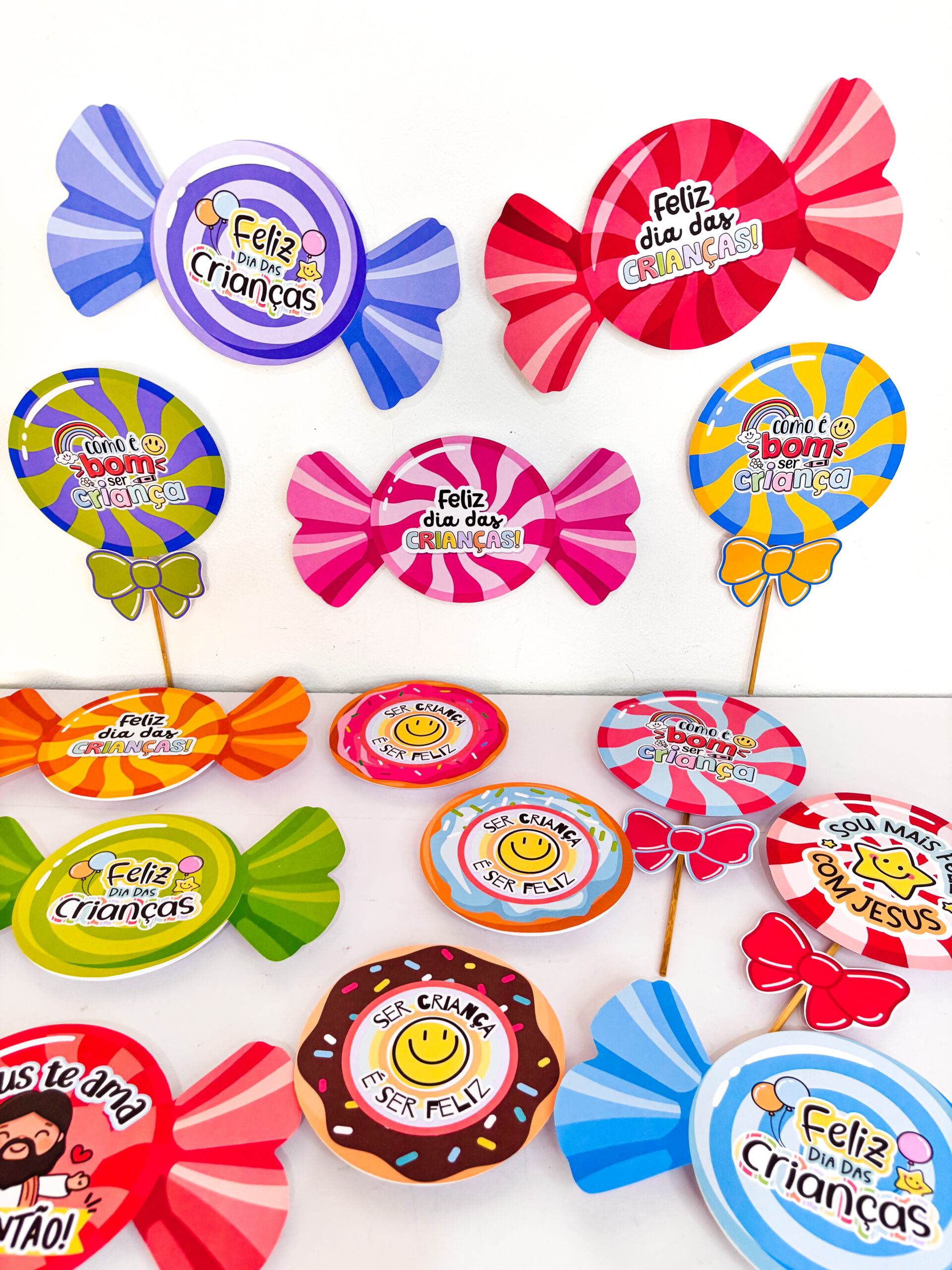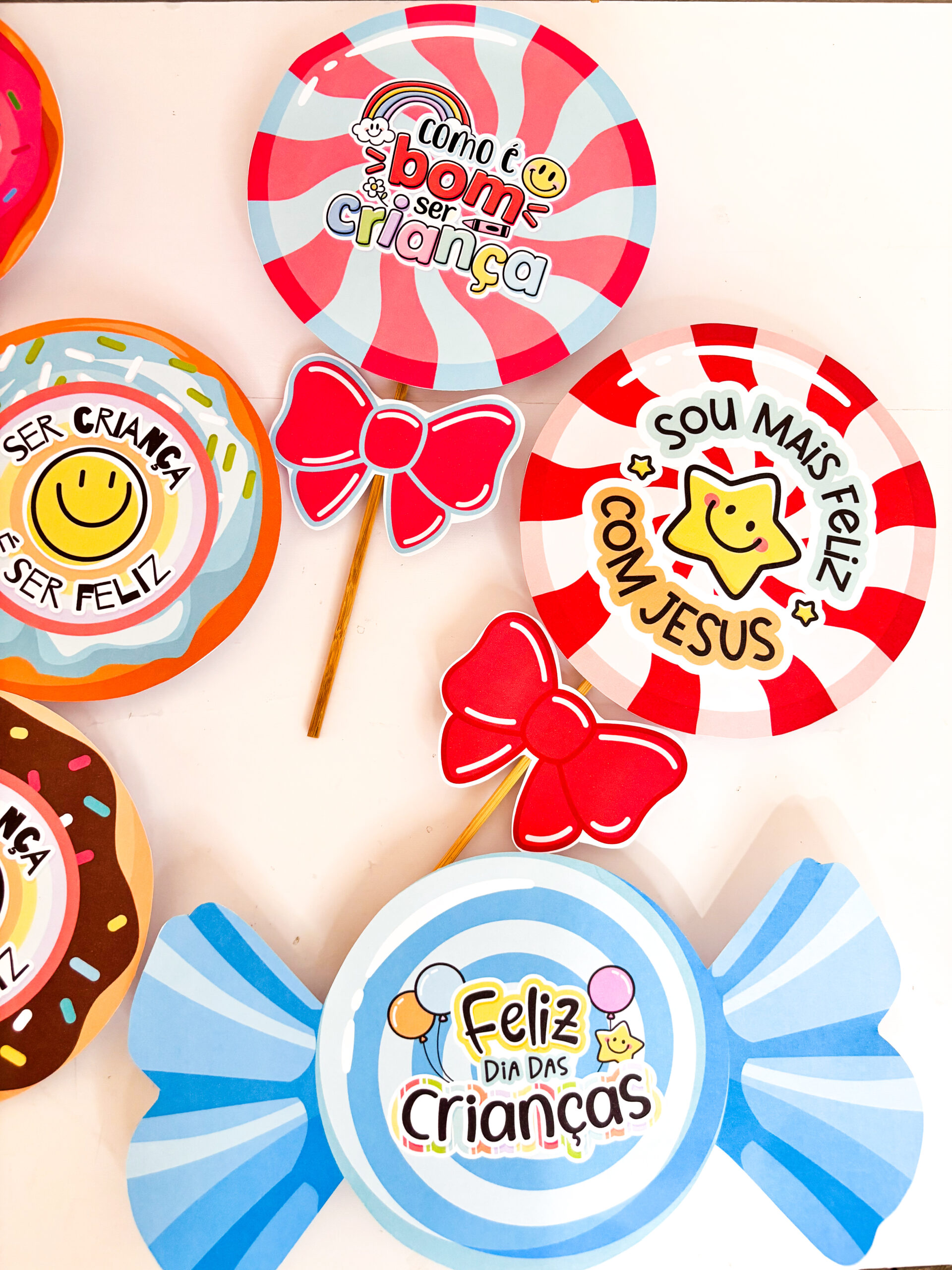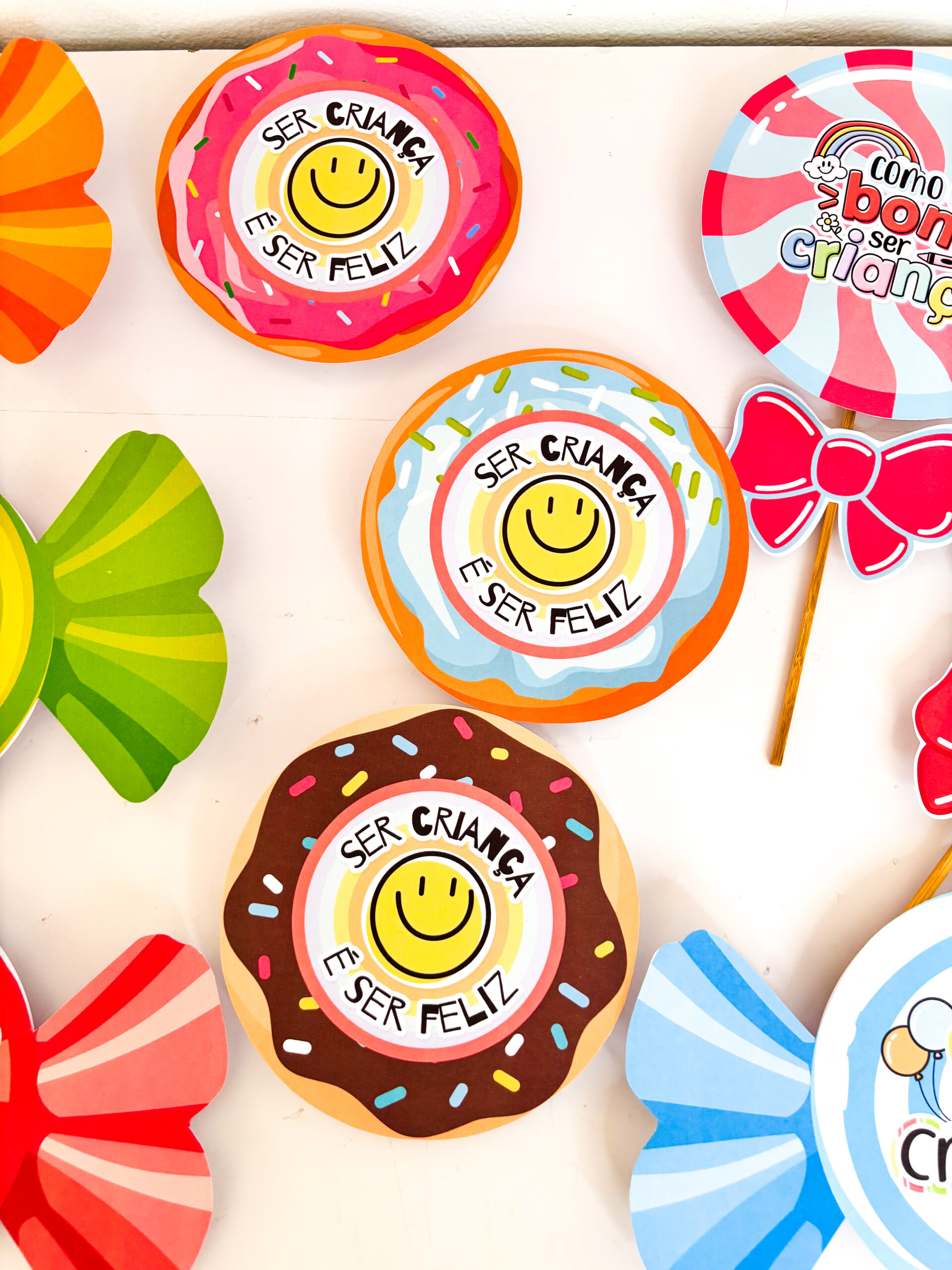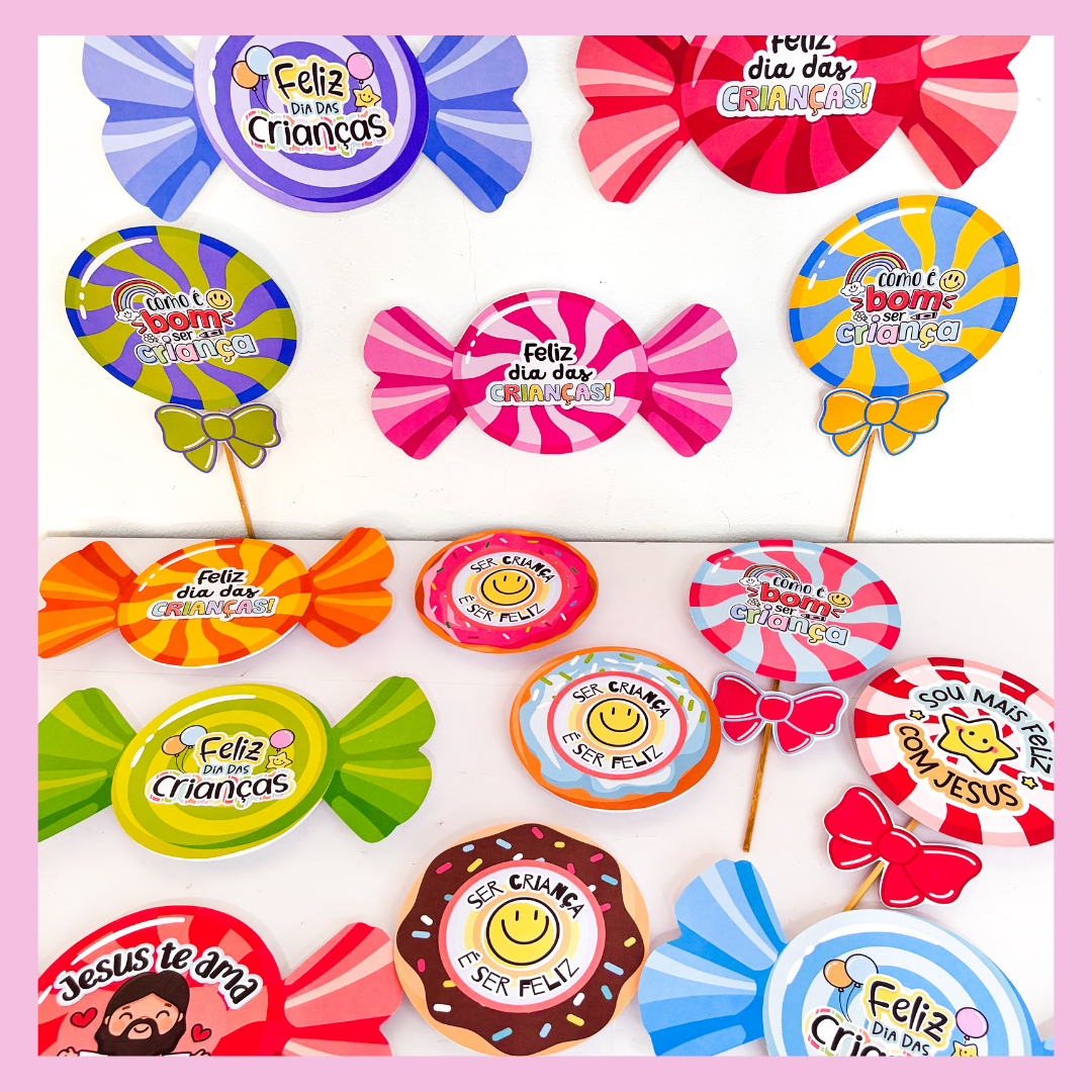 ✨ Preparei um material incrível de lembrancinhas com guloseimas, em três versões encantadoras: pirulito, bala e donuts e com 14 variações 🍭🍬🍩
