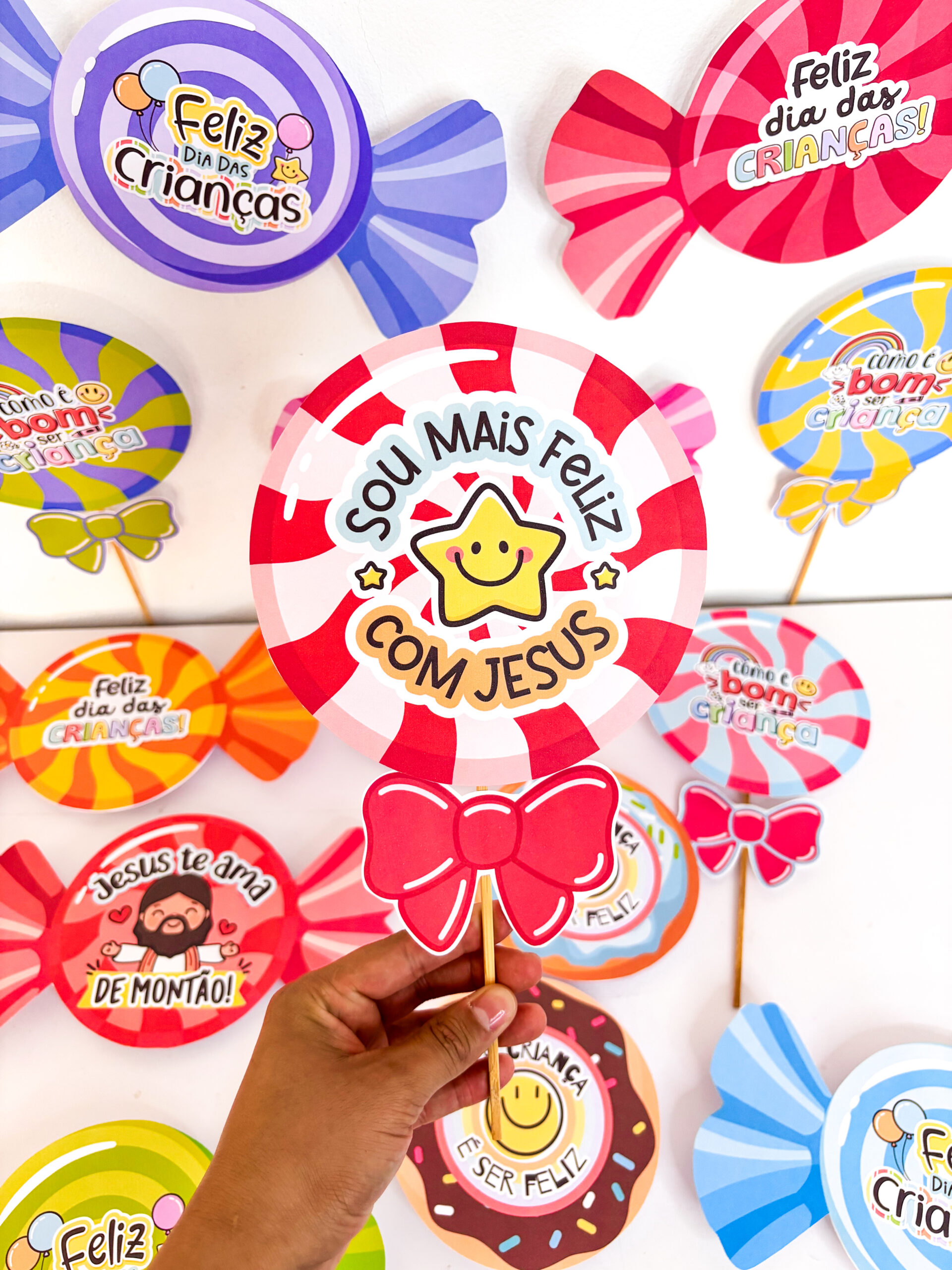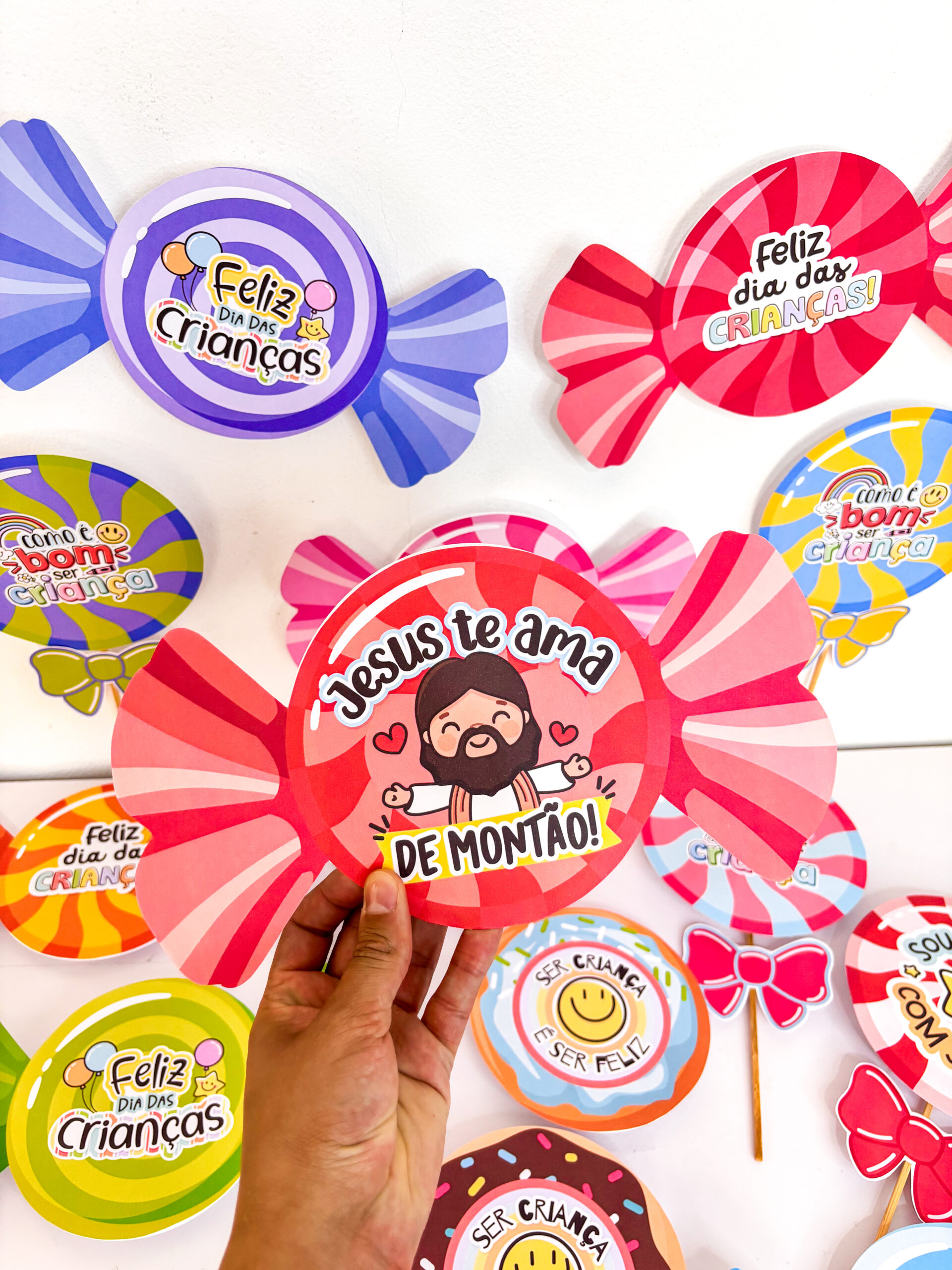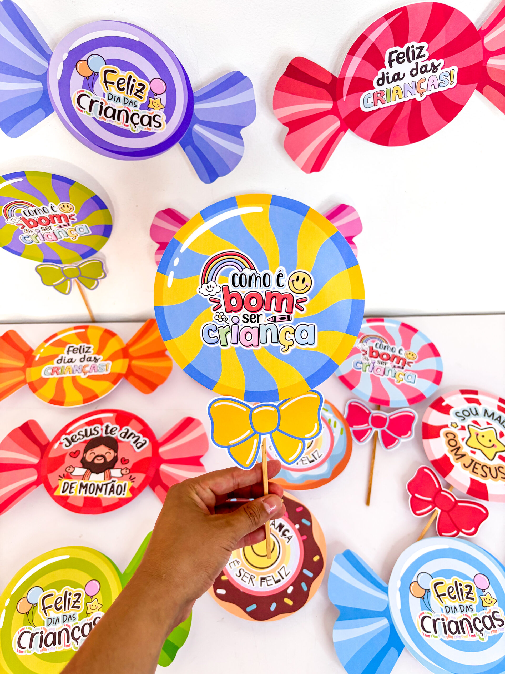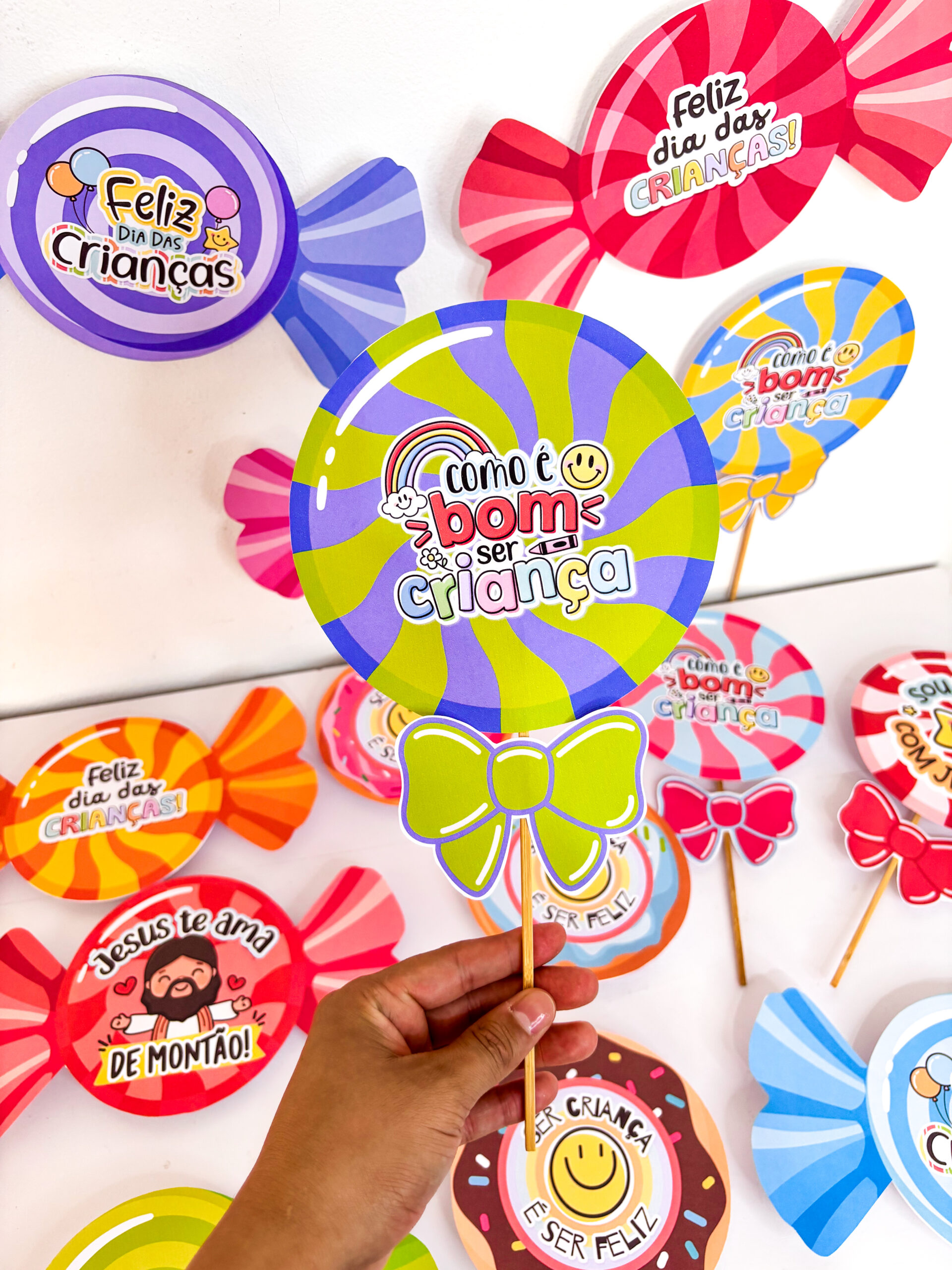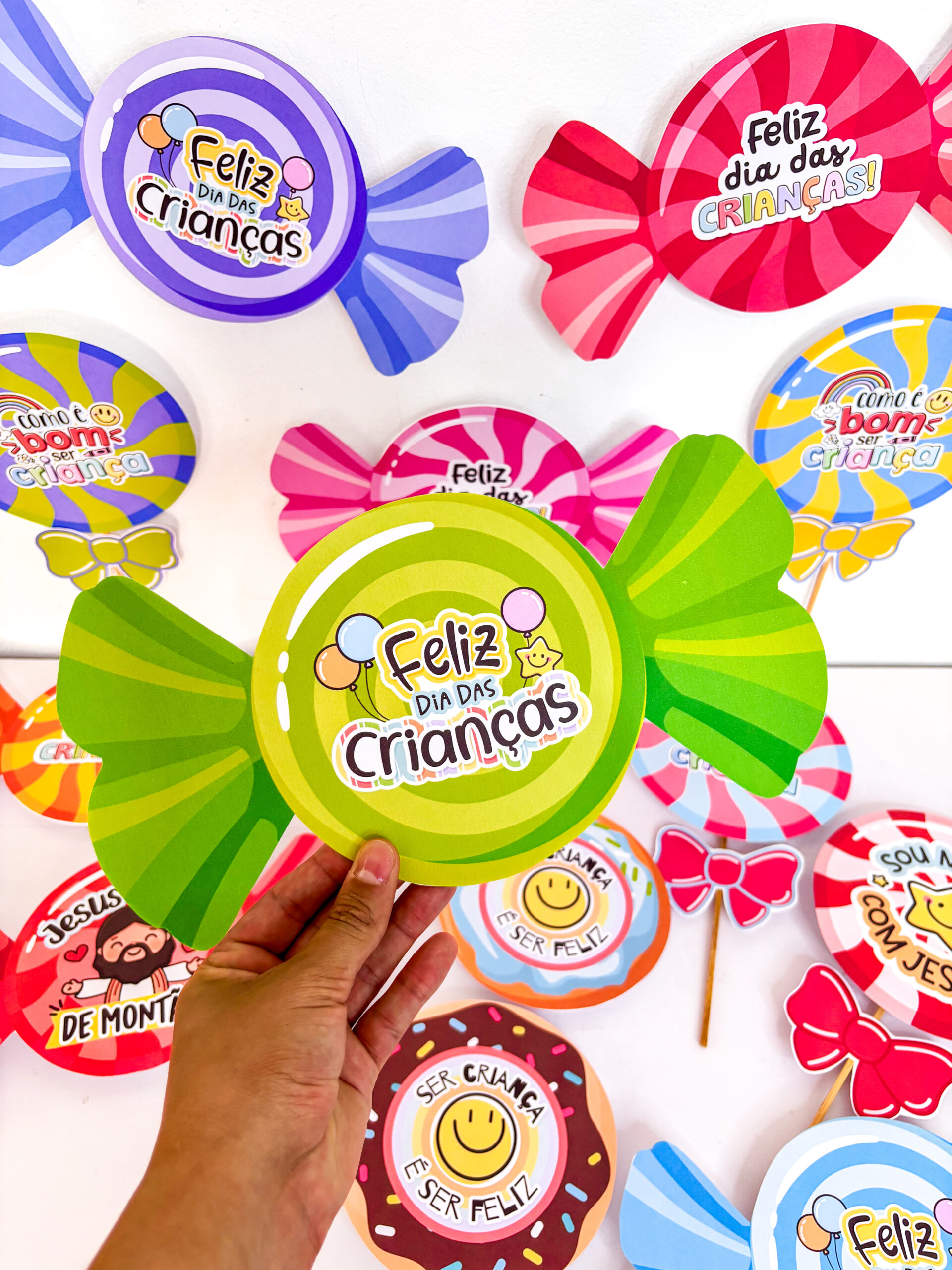 ✨ Preparei um material incrível de lembrancinhas com guloseimas, em três versões encantadoras: pirulito, bala e donuts e com 14 variações 🍭🍬🍩