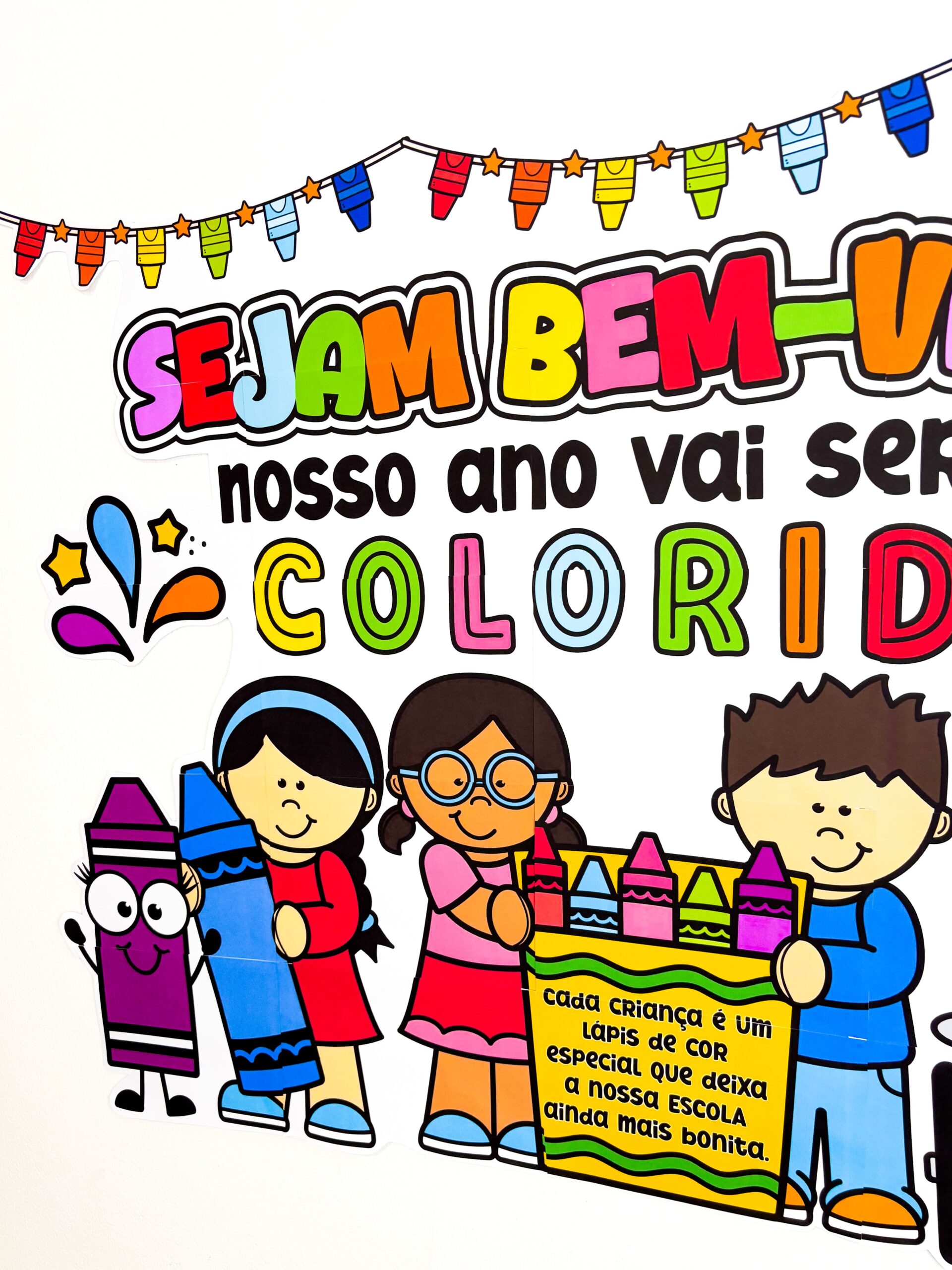 📏 Com 1.34 x 0.95 m, ele já chega iluminando o ambiente e deixando tudo com aquela carinha colorida que a gente ama pra começar o ano com a turma.
