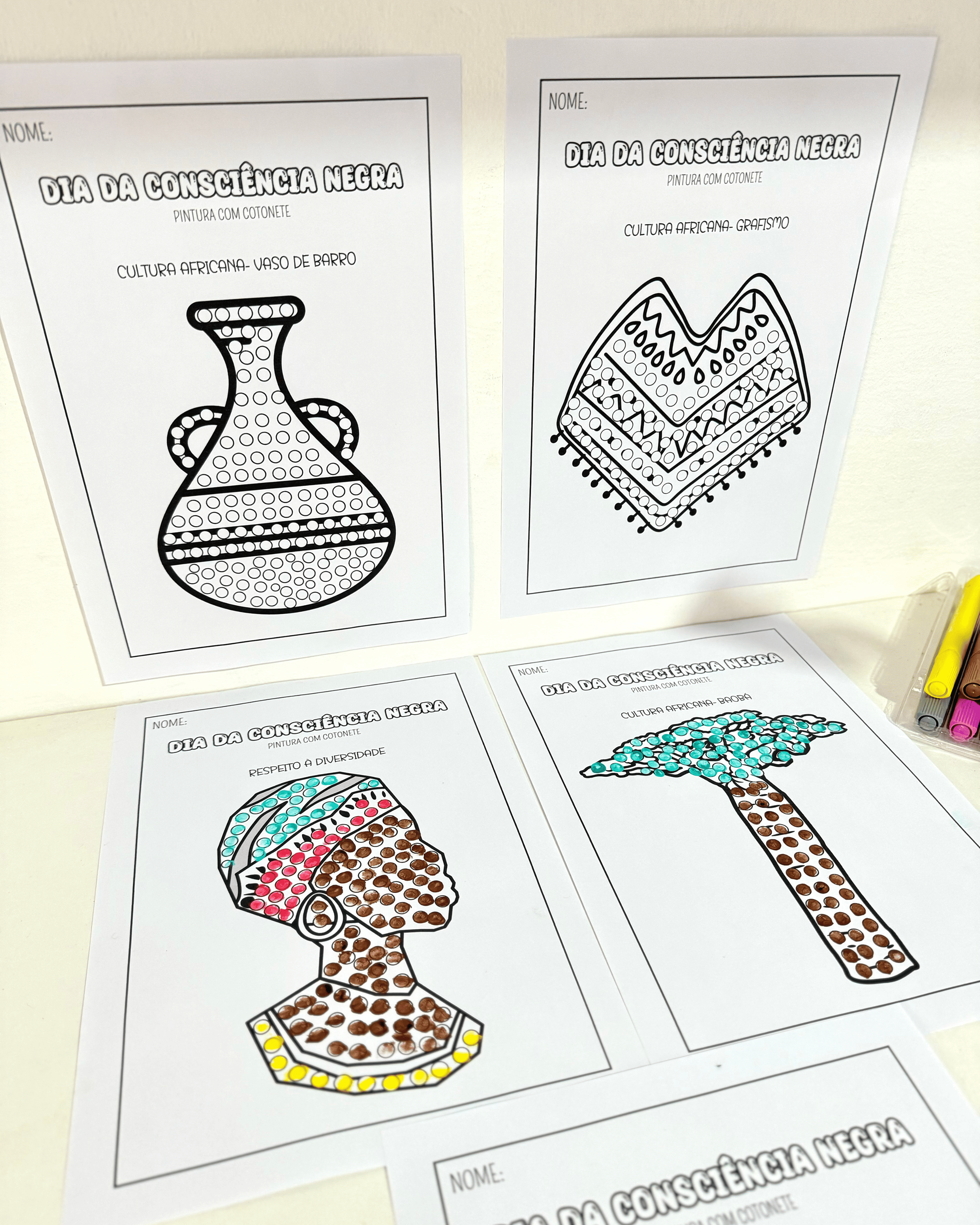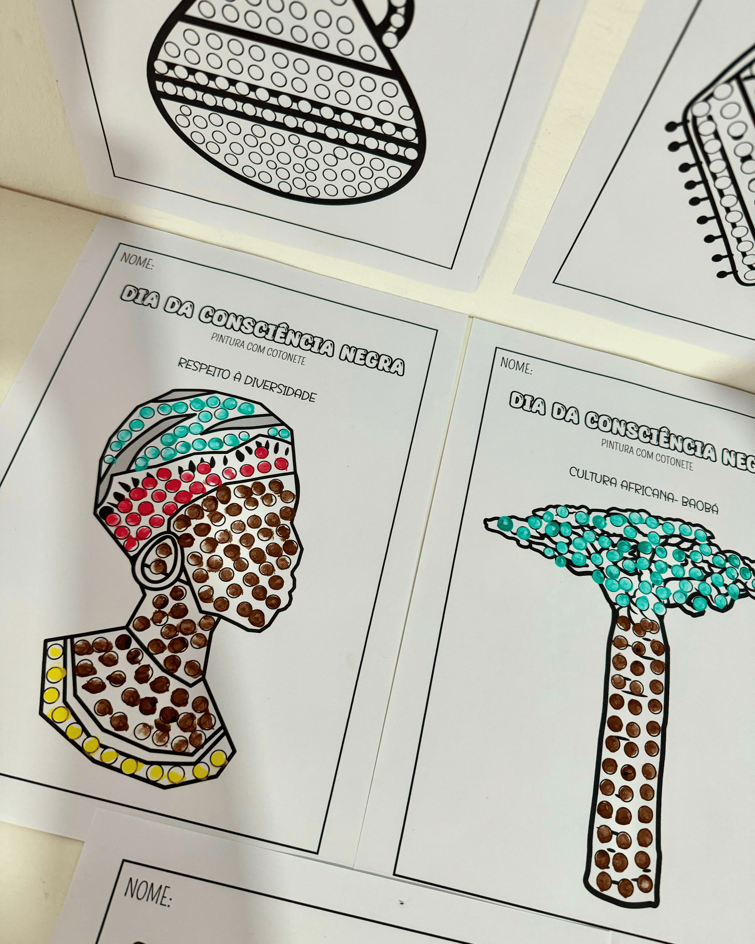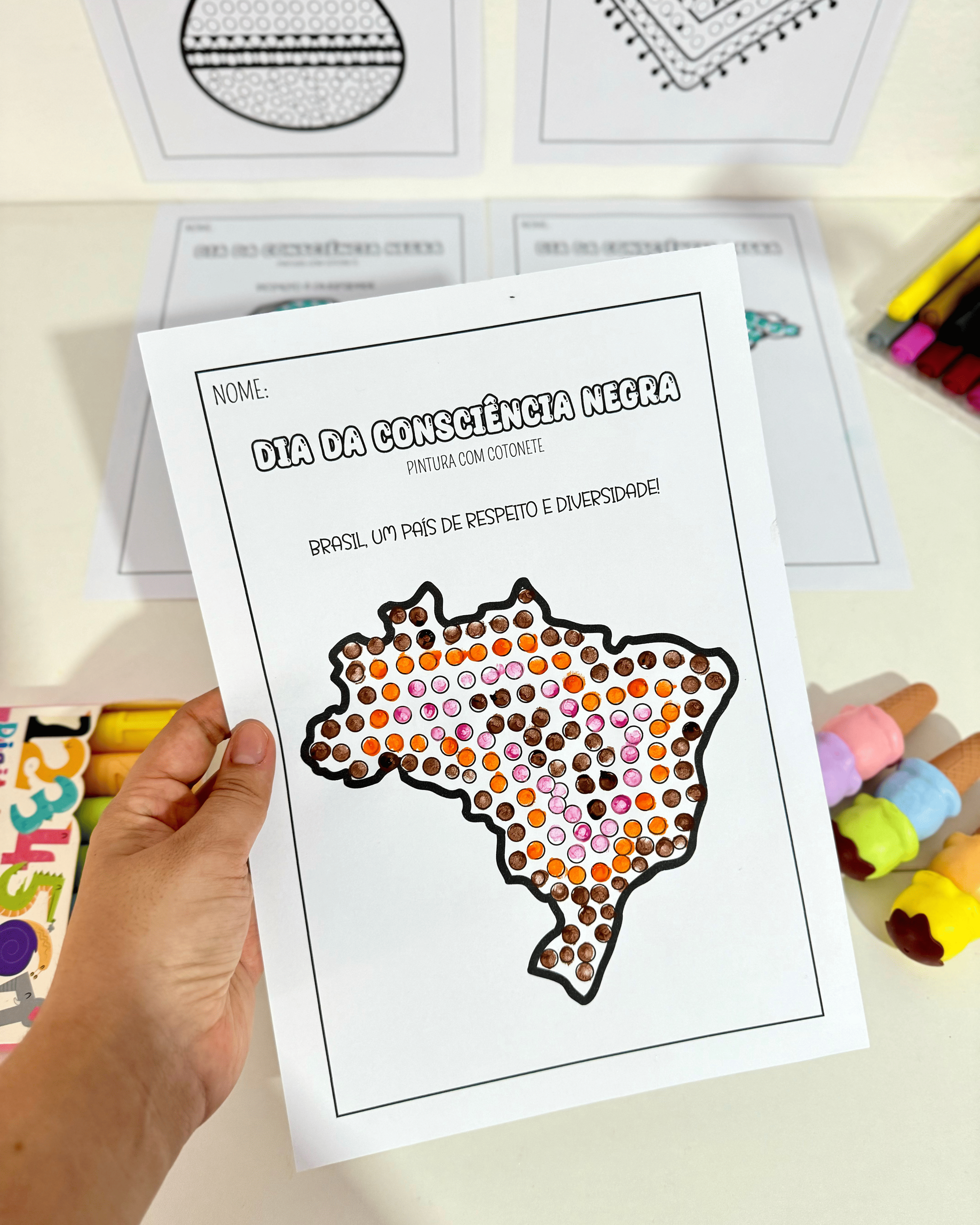 🤩 Proposta de pintura com cotonete, estimulando habilidades motoras enquanto trabalha temas como Diversidade Cultural e Respeito às Diferenças.