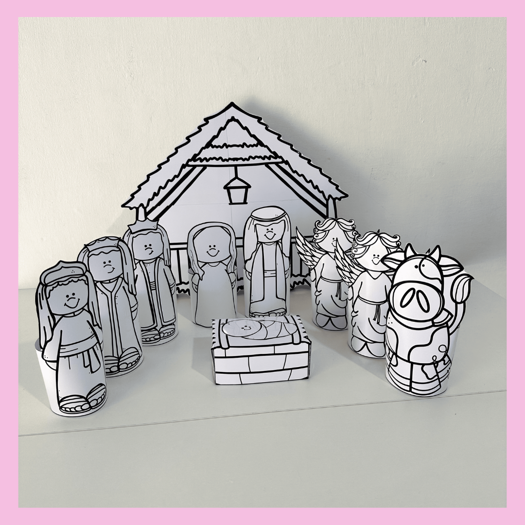 🥰 Presépio de mesa 3D para colorir e representar o nascimento de Jesus.