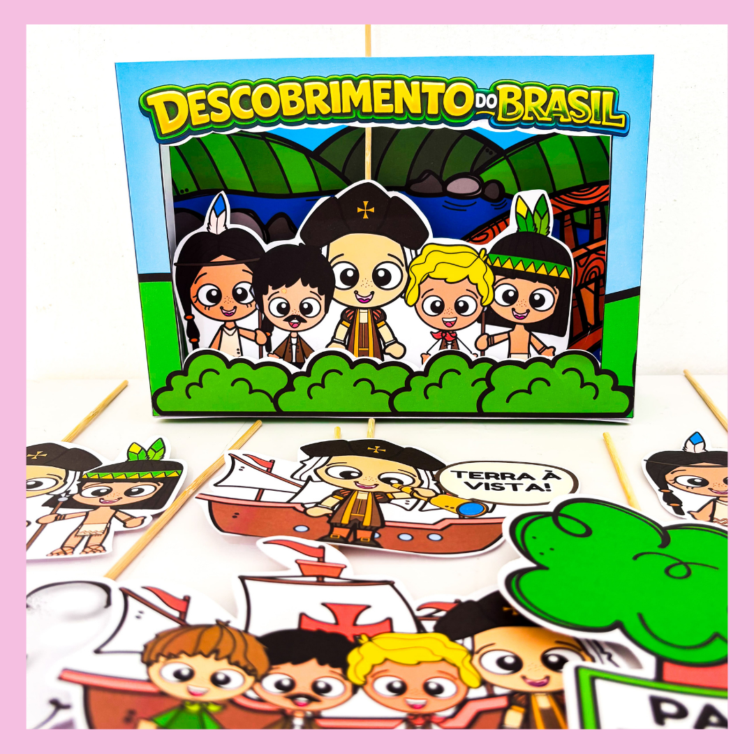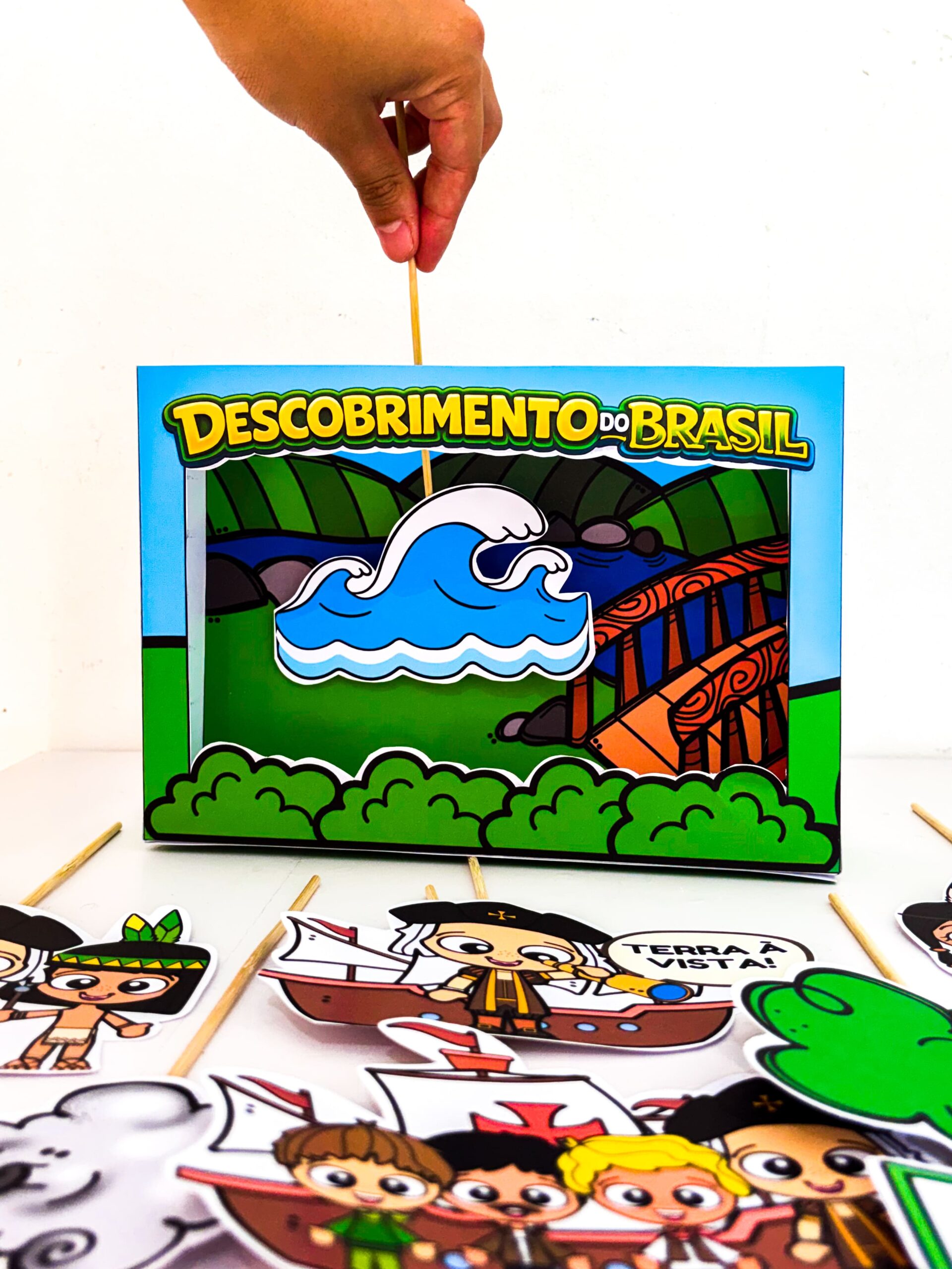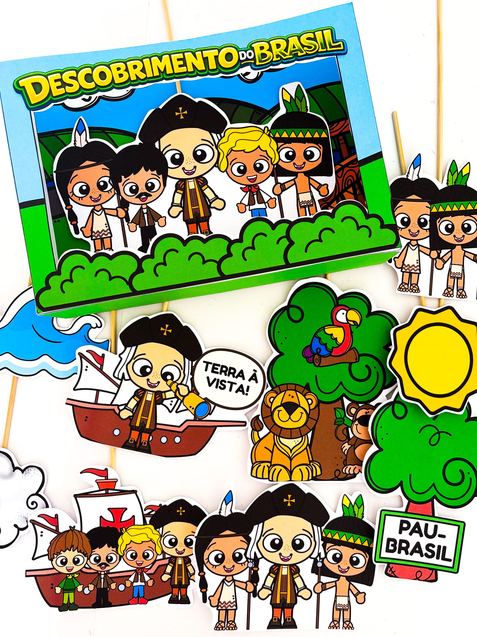 🥰Esse teatrinho de palitoches transforma o “Descobrimento do Brasil” em uma experiência leve, visual e cheia de significado para os pequenos